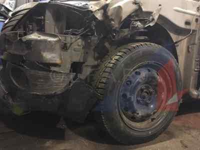 Помимо замены кузовных панелей, среди которых были переднее левое крыло, капот и бампер сильно пострадал внешний левый лонжерон. Он был частично смят и загнут вниз. Вместе с тем, в ходе дефектовки и измерению диагоналей по контрольным точкам были выявлены повреждения подрамника. Они же повлекли деформацию переднего левого рычага и поворотного кулака. Левый ступичный подшипник, естественно, был также заменен. Левую фару было решено установить бу, так как новая могла сильно отличаться от правой на автомобиле 2011 года.