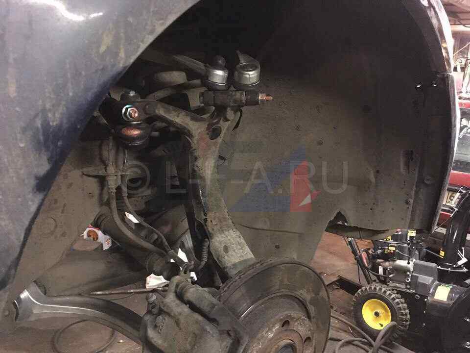 В Многофункциональный центр LFA обратился клиент на автомобиле Audi A4 B5 1995 года выпуска с жалобами на стуки в передней подвеске. Кроме того, владелец рассказал об ухудшении управляемости своей машины и биениях в руле. В ходе диагностики был выявлен износ нижних и верхних рычагов, а также рулевых тяг и наконечников. Также обнаружен хруст наружных ШРУСов, сопровождающихся характерным запотеванием на пыльниках.